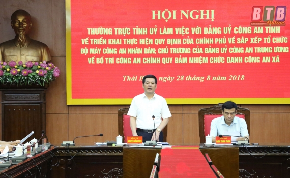 Thường trực Tỉnh ủy làm việc với Đảng ủy Công an tỉnh về tiếp tục đổi mới, sắp xếp tổ chức bộ máy