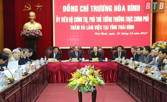 Đồng chí Trương Hòa Bình, Ủy viên Bộ Chính trị, Phó Thủ tướng thường trực Chính phủ làm việc với lãnh đạo tỉnh về tình hình kinh tế - xã hội và kết quả thực hiện công tác nội chính năm 2017, mục tiêu, nhiệm vụ trọng tâm năm 2018.