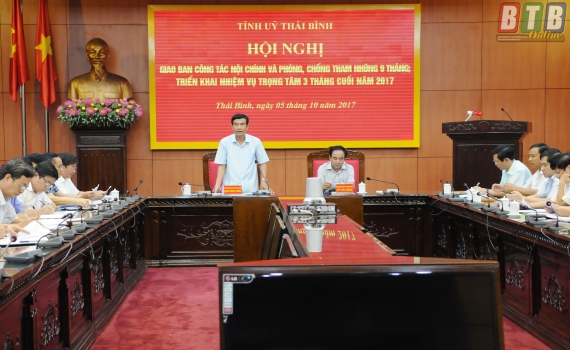 Chiều ngày 5/10, Thường trực Tỉnh ủy tổ chức hội nghị giao ban công tác nội chính và phòng, chống tham nhũng 9 tháng đầu năm, triển khai nhiệm vụ trọng tâm 3 tháng cuối năm 2017.