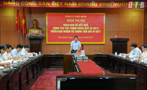 Sáng ngày 10/10, Thường trực Tỉnh ủy tổ chức hội nghị giao ban về kết quả công tác xây dựng Đảng quý III/2017, triển khai nhiệm vụ trọng tâm quý IV/2017.