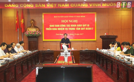 Chiều ngày 11/10, Ban Tuyên giáo Tỉnh ủy tổ chức hội nghị giao ban công tác khoa giáo quý III, triển khai nhiệm vụ trọng tâm quý IV năm 2017.