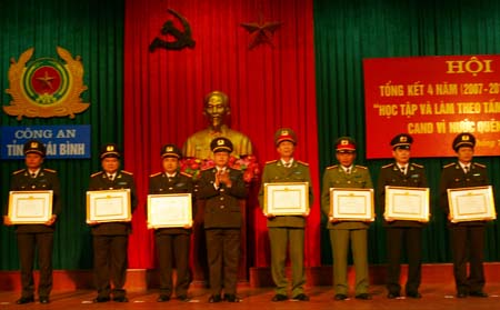 Công an tỉnh Thái Bình vừa tổ chức Tổng kết 4 năm (2007- 2010) thực hiện cuộc vận động “Học tập và làm theo tấm gương đạo đức Hồ Chí Minh - Công an nhân dân vì nước quên thân, vì dân phục vụ”.