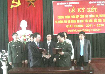 Sáng ngày 29/11/2011, Sở Thông tin và Truyền thông (TT&TT) và Bộ chỉ huy Bộ đội Biên phòng (BĐBP) tỉnh tổ chức lễ ký kết “ Chương trình phối hợp hoạt động công tác thông tin, truyền thông và thông tin...
