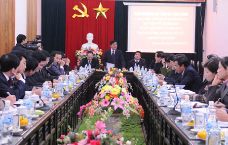 Chiều 1/2/2012, Thường trực Tỉnh uỷ đã tổ chức buổi làm việc với Ban Thường vụ Huyện uỷ Hưng Hà về kết quả lãnh đạo thực hiện nhiệm vụ chính trị năm 2011 và phương hướng, nhiệm vụ năm 2012.
