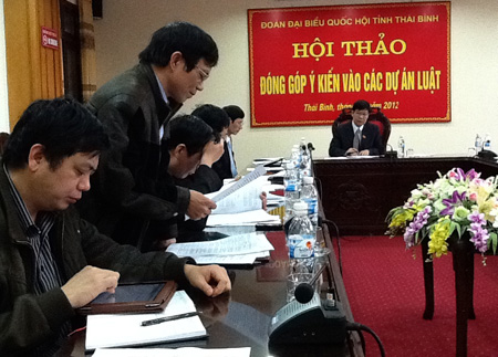 Đoàn ĐBQH Thái Bình vừa tổ chức hội thảo lấy ý kiến đóng góp vào dự án Luật Phòng, chống tác tại của thuốc lá và Luật Lao động (sửa đổi). Ông Phạm Xuân Thường - Trưởng đoàn ĐBQH Thái Bình khoá XIII làm...