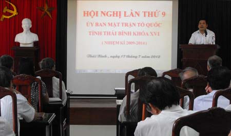 Sáng ngày 17/7/2012, Ủy ban Mặt trận Tổ quốc Việt Nam (MTTQVN) tỉnh tổ chức kỳ họp thứ IX sơ kết công tác mặt trận 6 tháng đầu năm, triển khai chương trình công tác 6 tháng cuối năm 2012.