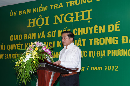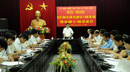 Ngày 09/07 /2012 tại khách sạn Dầu khí (Thái Bình), Ủy ban Kểm tra (UBKT) Trung ương đã tổ chức hội nghị giao ban đánh giá tình hình thực hiện nhiệm vụ công tác kiểm tra, giám sát 6 tháng...