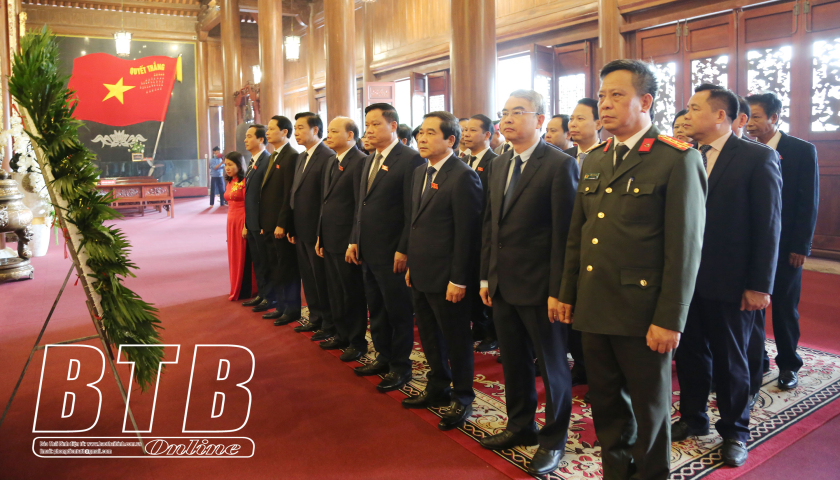 Các đồng chí lãnh đạo tỉnh và đại biểu HĐND tỉnh dâng hương tưởng niệm các anh hùng liệt sĩ