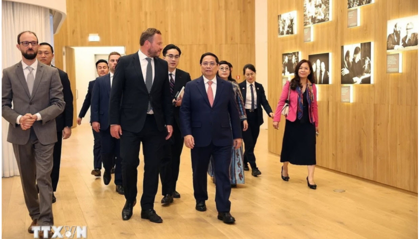 Nhân chuyến thăm chính thức Estonia, sáng 6/6 (giờ địa phương), tại Tallinn, Thủ tướng Phạm Minh Chính đến thăm Trung tâm E-Estonia Briefing Centre, biểu tượng của Chính phủ số hàng đầu thế giới.