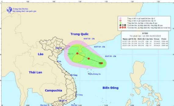 Công điện khẩn số 02/CĐ-PCTT, hồi 13h00' ngày 02/7/2019 của Ban Chỉ huy Phòng, chống thiên tai và TKCN tỉnh Thái Bình