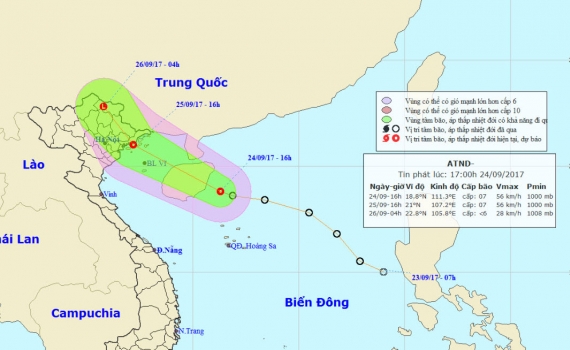 Hồi 12h ngày 15/9/2017, Trưởng ban Chỉ huy Phòng chống thiên tai và TKCN tỉnh Thái Bình ra Công điện khẩn số 17/CĐ-PCTT.