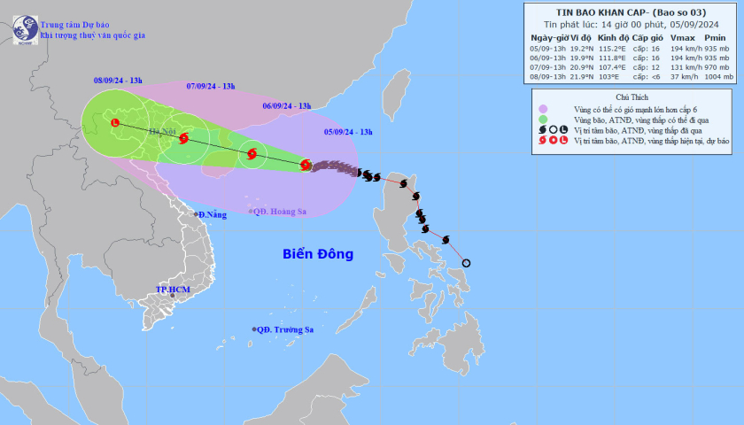 Công điện khẩn số 16-CĐ/TU ngày 4/9/2024 của Ban Thường vụ Tỉnh ủy về việc ứng phó với bão số 3