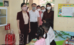 Đồng chí Trần Thị Bích Hằng, Phó Chủ tịch UBND tỉnh kiểm tra, chỉ đạo công tác phòng, chống dịch tại một số trường học