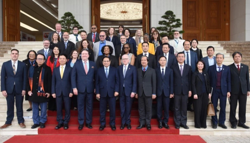 Sáng 31/3, tại Trụ sở Chính phủ, Thủ tướng Phạm Minh Chính có buổi làm việc với Đoàn đại biểu 21 trường đại học danh tiếng hàng đầu của Hoa Kỳ đang tham dự Chương trình trao đổi học thuật quốc tế (IAPP) 2025 tại Việt Nam. Cùng dự có đại diện lãnh đạo các bộ, ngành, các trường đại học hàng đầu của Việt Nam; Đại sứ Hoa Kỳ tại Việt Nam Marc E. Knapper.