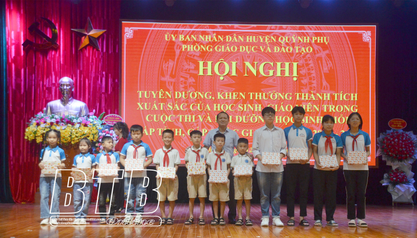 Sáng ngày 12/6, Phòng Giáo dục và Đào tạo huyện Quỳnh Phụ tổ chức hội nghị tuyên dương, khen thưởng học sinh, giáo viên đạt thành tích xuất sắc trong các cuộc thi và bồi dưỡng học sinh giỏi cấp tỉnh, cấp quốc gia năm học 2023-2024.
