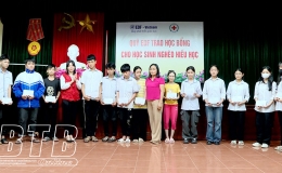 Chiều ngày 24/4, đại diện Quỹ EDF phối hợp với Hội Chữ thập đỏ thành phố Thái Bình tổ chức trao học bổng cho 90 học sinh thuộc diện hộ nghèo hiếu học, học...