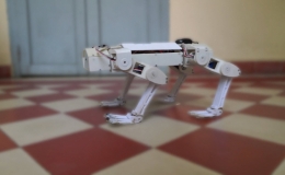Robot cao 20 cm, nặng 2 kg, có thể đi vào vùng sạt lở, địa hình đồi núi để hỗ trợ cứu hộ, do nhóm học sinh trường THPT Lê Hồng Phong, thành phố Hồ Chí...