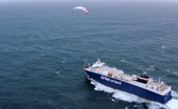 Diều khổng lồ kéo tàu nặng hơn 21.000 tấn ở Pháp