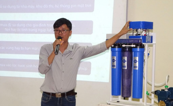 Thiết bị ứng dụng công nghệ CDI do TS Đỗ Hữu Quyết, giảng viên thỉnh giảng Đại học Sư phạm Kỹ thuật TP HCM phát triển có thể lọc nước mưa có thể uống an toàn.
