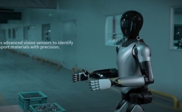 Robot hình người làm việc nhóm nhuần nhuyễn trong nhà máy