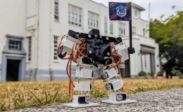 Robot hình người cao 14,1 cm, có thể đi bằng hai chân và cử động tay, vai, hông, đầu gối.