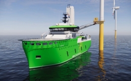 Mẫu tàu dài 70 m do công ty Damen phát triển trang bị bộ sạc 4 MW và sử dụng cầu tàu bù trừ chuyển động để kết nối với turbine gió.