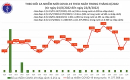 Theo Bản tin Bộ Y tế về tình hình chống dịch COVID-19, ngày 22/8, ghi nhận 2.197 ca mắc COVID-19 mới; có 8.224 bệnh nhân được công bố khỏi bệnh.