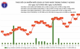 Ngày 9/8, số người mắc COVID-19 mới lại tăng vọt lên 2.340 ca