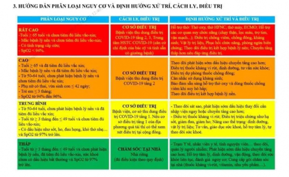 Ngày 1/12, Bộ Y tế có Quyết định số 5525/QĐ-BYT ban hành hướng dẫn phân loại nguy cơ người nhiễm SARS-CoV-2 và định hướng xử trí, cách ly, điều trị. Quyết định này thay thế cho Quyết định số 3646/QĐ-BYT ban hành ngày 31/7/2021.