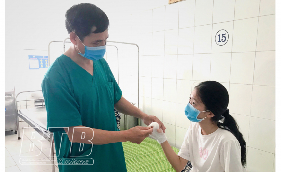 Bệnh viện Đa khoa huyện Vũ Thư mới tiếp nhận và điều trị cho bệnh nhi Trần Cẩm Tú, 15 tuổi, xã Tân Lập, huyện Vũ Thư trong tình trạng bị khuyết da bàn tay phải, viêm xương vì chữa mụn theo phương pháp dân gian (truyền miệng) bằng cách đắp lá vào vết thương.
