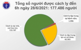 Bộ Y tế cho biết: Tính từ 12h đến 18h30 ngày 28/6 có 145 ca mắc mới (BN15890-16041), trong đó 6 ca cách ly sau khi nhập cảnh, 139 ca lây nhiễm trong nước.