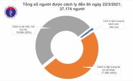 Bản tin 18h ngày 21/3 của Ban Chỉ đạo Quốc gia Phòng chống dịch COVID-19 cho biết: Trong ngày, không phát hiện ca mắc COVID-19 mới, 37.174 người đang thực...