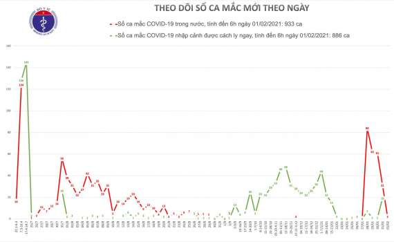 Bản tin 6h ngày 1/2 của Ban Chỉ đạo Quốc gia Phòng chống dịch COVID-19 cho biết có thêm 2 ca mắc mới COVID-19 ở cộng đồng đều ghi nhận tại Hà Nội.