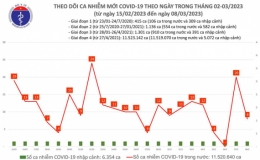 Theo Bản tin Bộ Y tế về tình hình chống dịch COVID-19, ngày 8/3, ghi nhận 8 ca mắc COVID-19 mới; có 5 bệnh nhân được công bố khỏi bệnh.