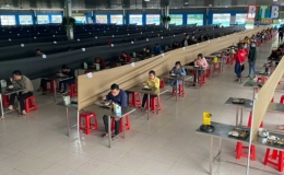 Phòng, chống dịch Covid-19: Bảo đảm khoảng cách an toàn trong bữa ăn ca cho người lao động