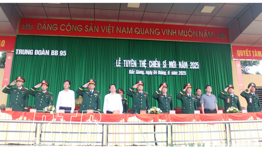Sáng ngày 4/6, Trung đoàn 95, Sư đoàn 325, Quân đoàn 12, huyện Lục Ngạn (Bắc Giang) đã tổ chức lễ tuyên thệ chiến sĩ mới năm 2025. Dự buổi lễ có các đồng chí lãnh đạo Quân đoàn 12 và huyện Hưng Hà.