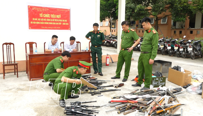 Sáng ngày 20/6, Công an huyện Tiền Hải tổ chức tiêu hủy vũ khí, vật liệu nổ, công cụ hỗ trợ và pháo đã vận động thu hồi trong nhân dân.