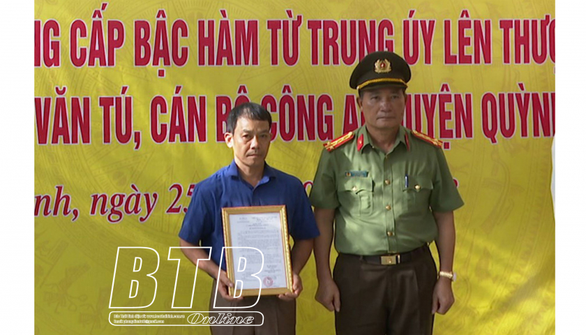 Sáng ngày 25/9, thừa ủy quyền của Bộ trưởng Bộ Công an, lãnh đạo Công an tỉnh đã trao quyết định truy thăng cấp bậc hàm đối với Trung úy Đỗ Văn Tú, cán bộ Công an thị trấn An Bài (Quỳnh Phụ) hy sinh trong...