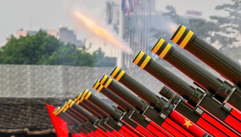 Diễn tập bắn 21 loạt đại bác ở Bến Bạch Đằng
