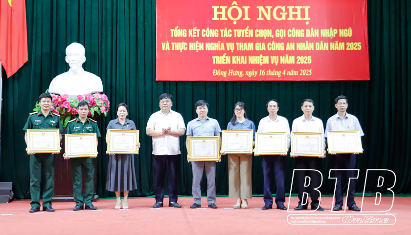 Chiều ngày 16/4, UBND huyện Đông Hưng tổ chức hội nghị tổng kết công tác tuyển chọn, gọi công dân nhập ngũ và thực hiện nghĩa vụ tham gia Công an nhân dân năm 2025; triển khai nhiệm vụ năm 2026.