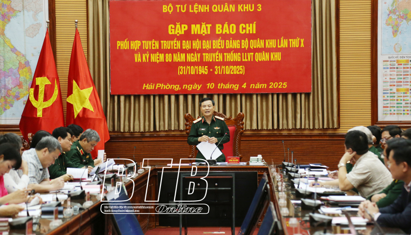 Chiều ngày 10/4, tại thành phố Hải Phòng, Bộ Tư lệnh Quân khu 3 tổ chức gặp mặt các cơ quan báo chí phối hợp tuyên truyền Đại hội đại biểu Đảng bộ Quân khu lần thứ X, nhiệm kỳ 2025 - 2030 và kỷ niệm 80...