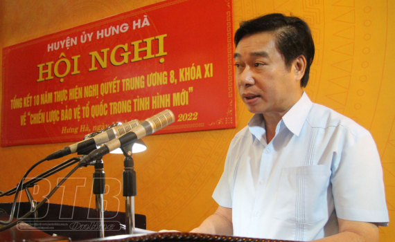 Chiều ngày 11/11, Huyện ủy Hưng Hà tổ chức tổng kết 10 năm thực hiện Nghị quyết Trung ương 8 (khóa XI) về chiến lược bảo vệ Tổ quốc trong tình hình mới. Các đồng chí: Nguyễn Văn Giang, Ủy viên Ban Thường...