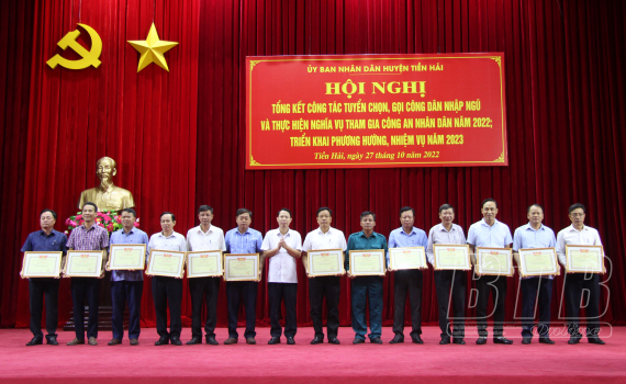 Chiều ngày 27/10, huyện Tiền Hải tổ chức hội nghị tổng kết công tác tuyển chọn, gọi công dân nhập ngũ và thực hiện nghĩa vụ tham gia Công an nhân dân năm 2022; triển khai phương hướng, nhiệm vụ năm...