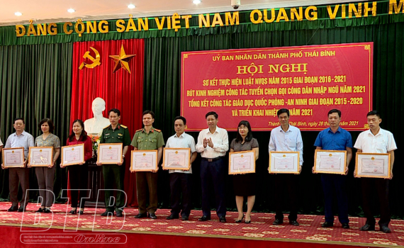 Sáng 28/4, UBND thành phố Thái Bình tổ chức hội nghị sơ kết thực hiện Luật Nghĩa vụ quân sự năm 2015, giai đoạn 2016 - 2021; rút kinh nghiệm công tác tuyển chọn, gọi công dân nhập ngũ năm 2021.