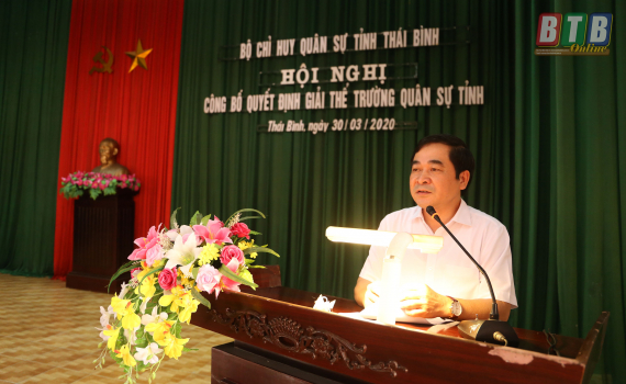 Sáng ngày 30/3, Bộ CHQS tỉnh tổ chức hội nghị công bố quyết định giải thể Trường Quân sự tỉnh. Đồng chí Nguyễn Tiến Thành, Phó Bí thư Tỉnh ủy dự hội nghị.