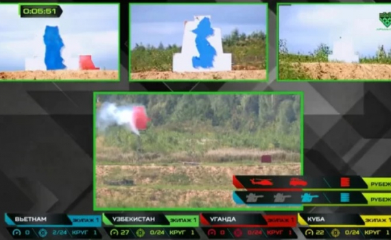 Đội Việt Nam hôm 16/8 về đích thứ hai với thành tích 2 giờ 24 phút 25 giây, xếp sau đội Uzbekistan trong chung kết Tank Biathlon.