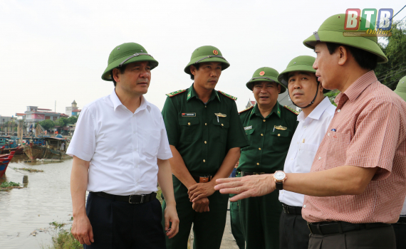 Các đồng chí lãnh đạo tỉnh kiểm tra công tác phòng, chống bão số 2