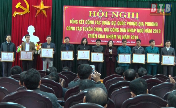 Sáng 13/12, UBND thành phố Thái Bình tổ chức tổng kết công tác quân sự - quốc phòng địa phương, công tác tuyển chọn, gọi công dân nhập ngũ năm 2018; triển khai nhiệm vụ năm 2019.