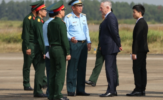 Sáng 17/10, Bộ trưởng Quốc phòng Mỹ James Mattis đến thăm sân bay Biên Hòa, một điểm nóng dioxin trước đây là căn cứ quân sự Mỹ.
