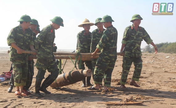 Sáng ngày 25/10, tại bãi biển Cồn Vành, huyện Tiền Hải, lực lượng công binh Bộ CHQS tỉnh đã hủy nổ an toàn 1 quả bom phá nặng 500 bảng Anh (khoảng 250 kg).